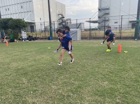 密集地帯での攻防を踏まえて、ラックの攻防、タックルなどの姿勢を意識して